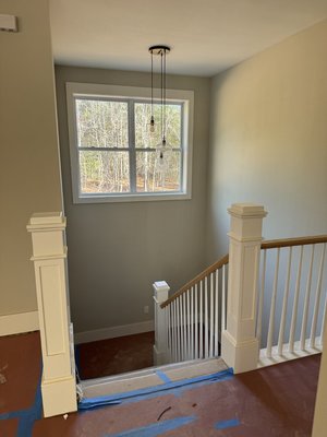 One step forward and two steps back. The painting crew came in and totally botched all of our stained wood. Sherwin Williams took the wood samples from our stairs and mantle and created matched stains so that our mantle matched our front door and the stairs matched the floor...within reason. Well the painters decided to stain the wood as dark as possible with no regard to the stain color we were going for. Makes you want to pull your hair out.